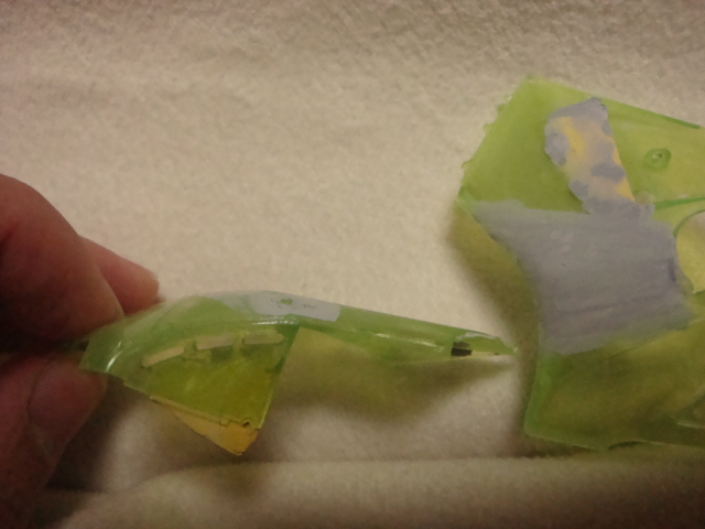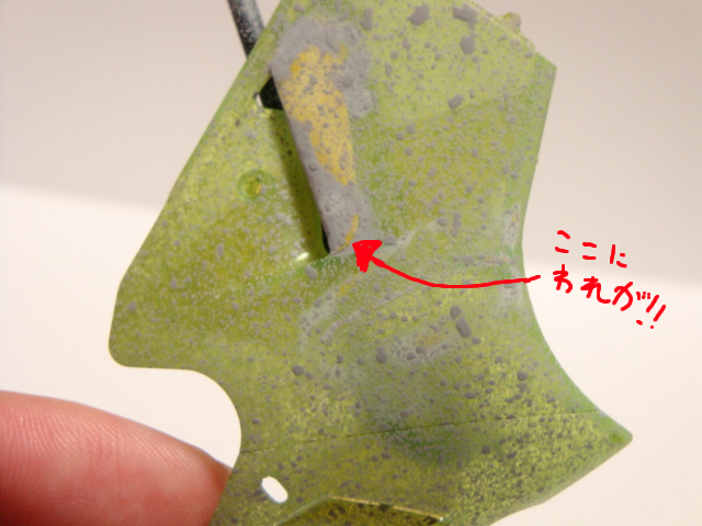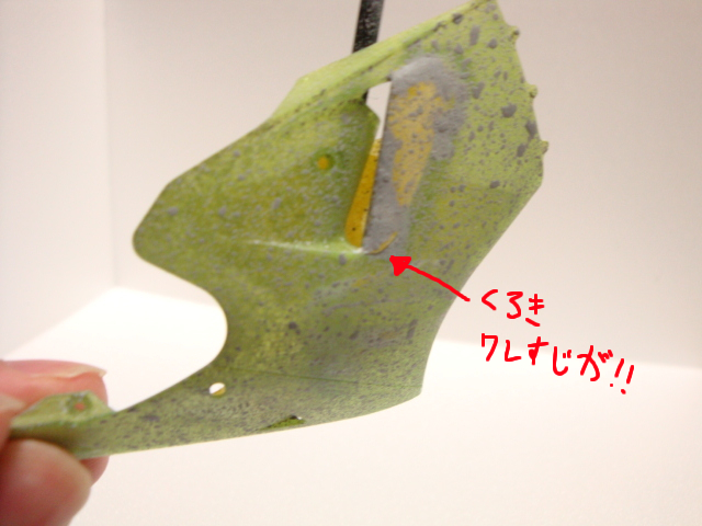 緑のウィング部分に傷を入れました