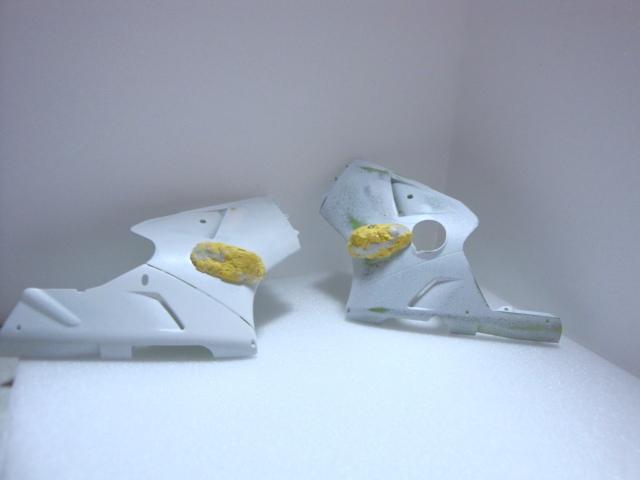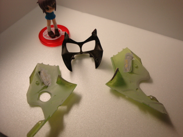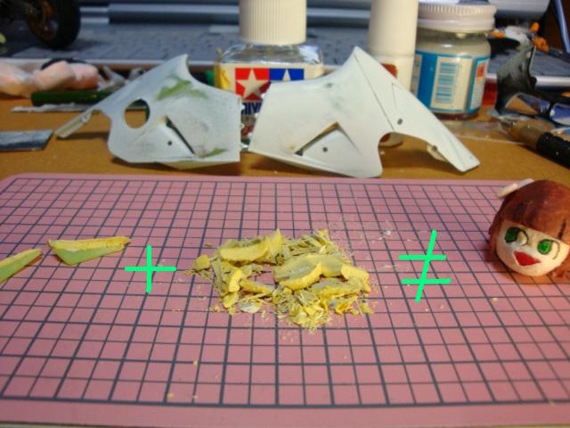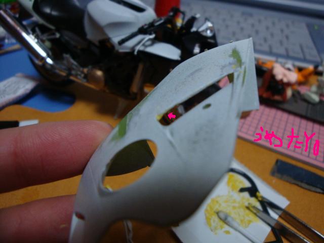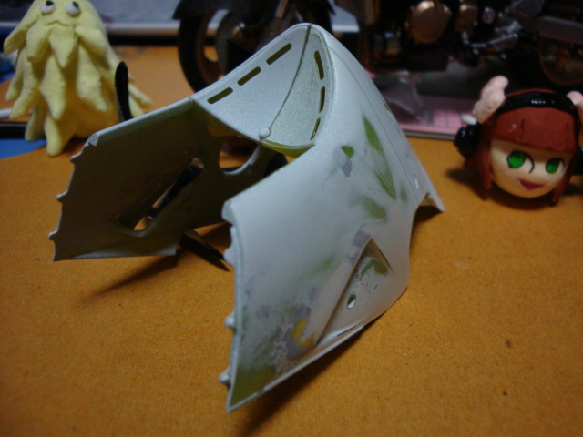 痛バイク(プラモ)を作ってみます第.40回削ったウィングのパテ梅などヘギュアのほうも少し3